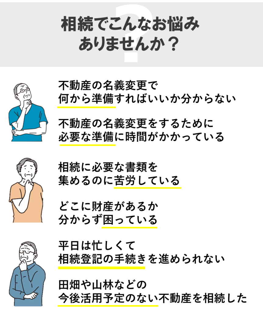 相続人・被相続人の戸籍収集や不動産の名義変更(相続登記)を対応可能。 |