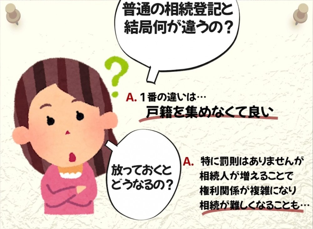 長期相続登記等未了土地とは簡単に言うと、法務局から「長いこと相続登記できてませんよ。今回色々準備しといたから早く相続登記しといてね」というお知らせです。