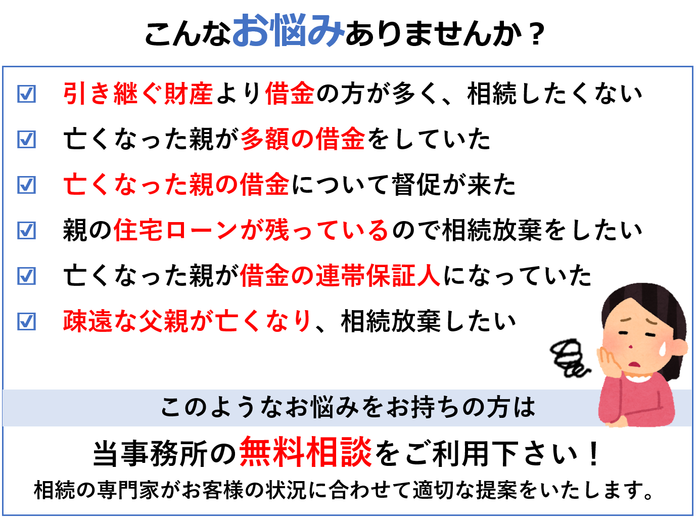 相続放棄に関して、以下のようなことにお悩みではありませんか?