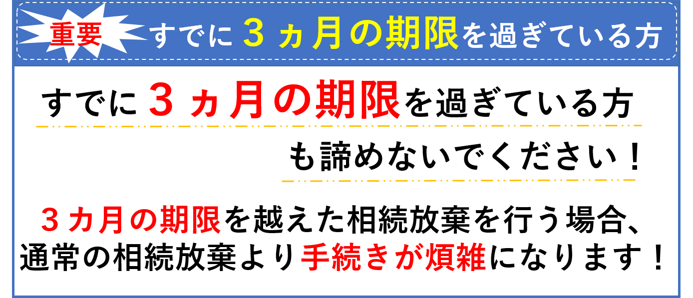 しかし、相続放棄は、相続開始を知った日から3ヶ月以内に家庭裁判所に申し立てをしなくてはなりません。