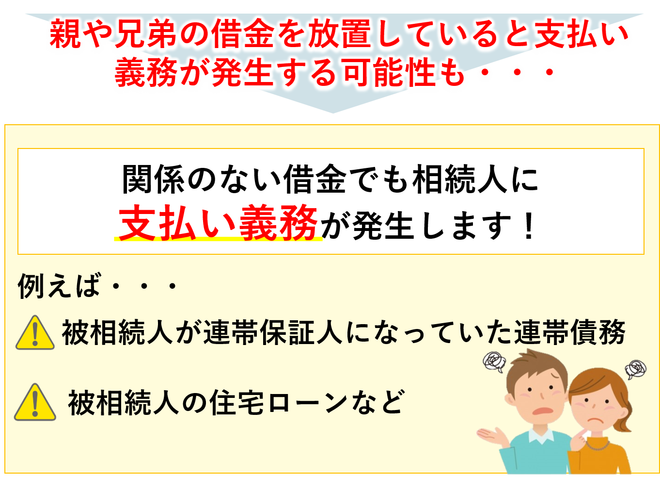 自分とはまったく関係ない借金でも支払い義務が相続によって発生してしまうのです。