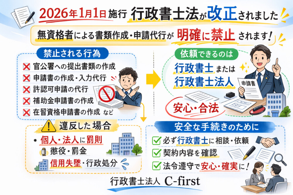 📢【2026年1月施行】 ★無資格者による行政書類作成は「違法行為」です! 行政手続きで提出する