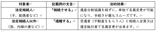 ② 「相続させる」または「遺贈する」の使い分け